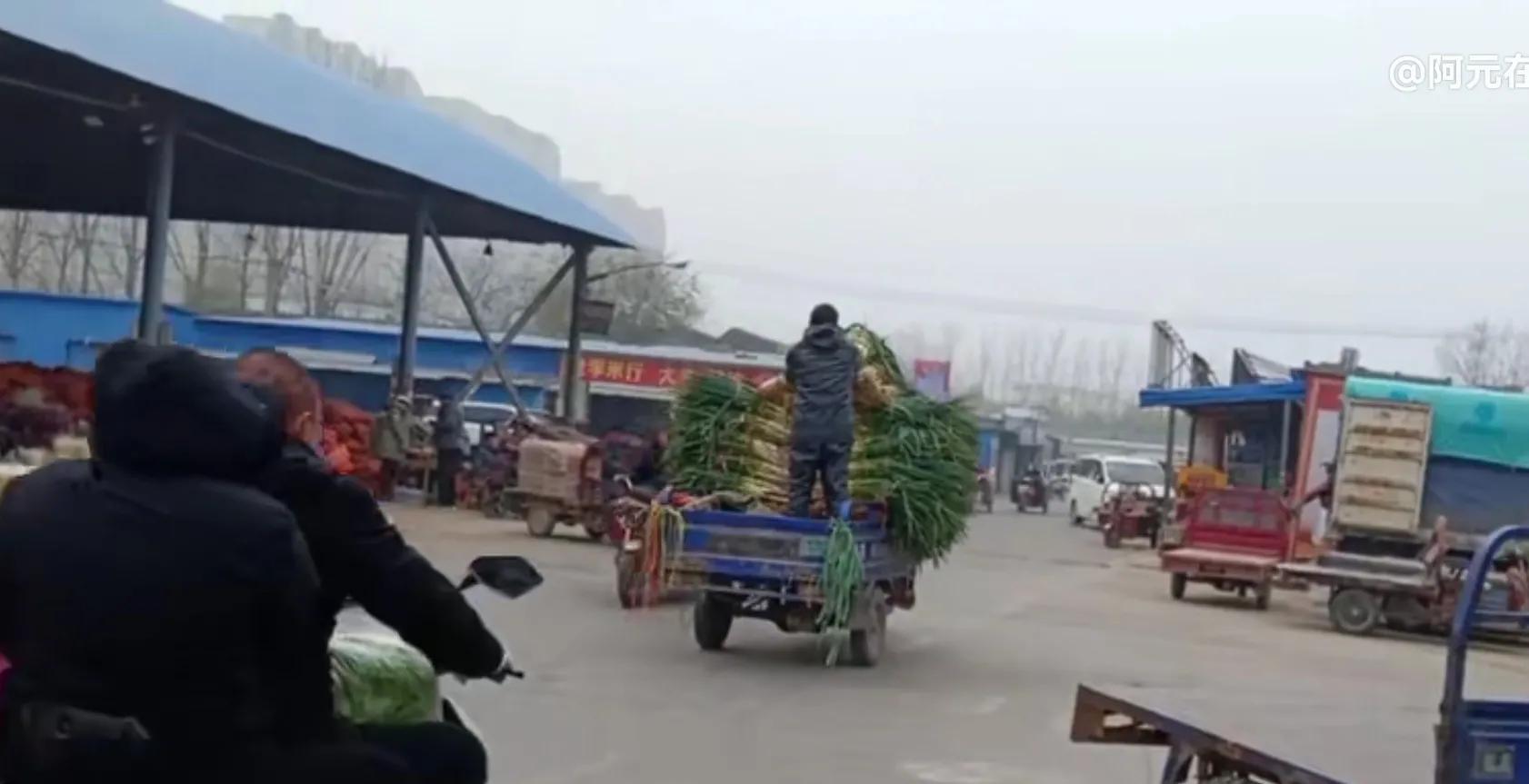 市場門口處的主干道上,等待著卸貨的各種運(yùn)送車輛長達(dá)幾公里。