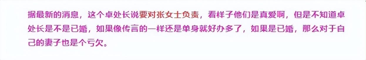 同時,也有一些網(wǎng)友對這起事件表示理解和同情。他們認為,卓處長和張女士之間可能是真愛,他們在工作中相識相戀,只是因為各自都有家庭而無法公開。