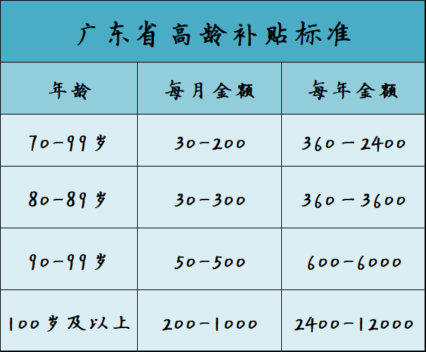 二、廣東省,高齡老人,補助標(biāo)準(zhǔn)是多少?