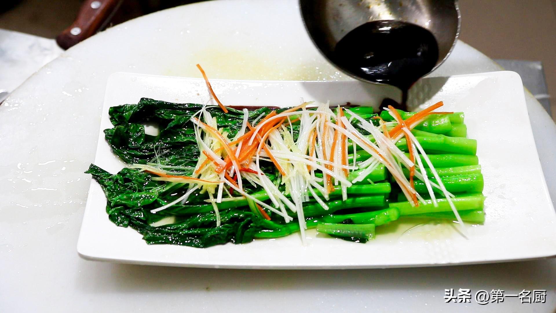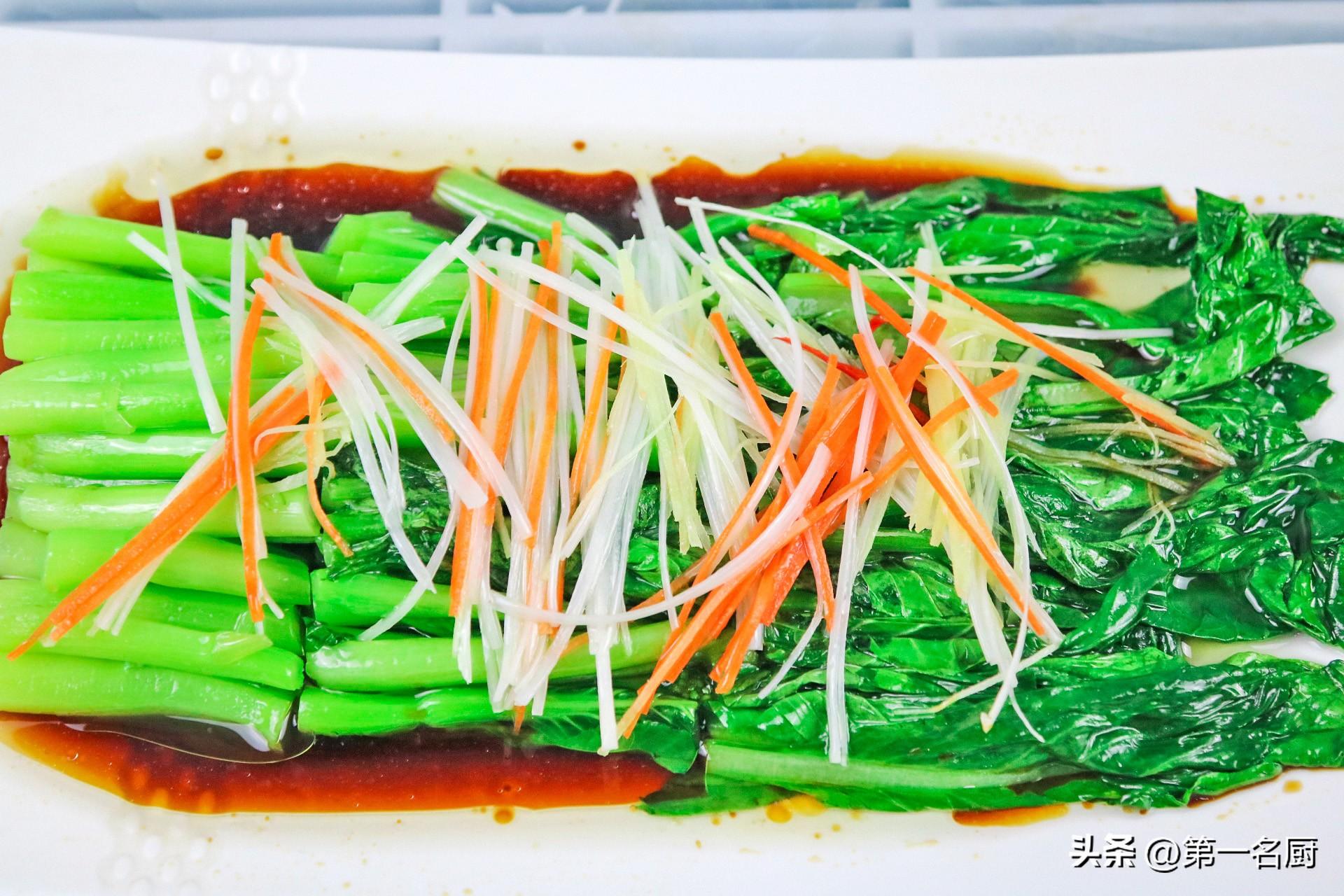 白灼菜心是廣東的一道經(jīng)典素菜,口感脆嫩,做法簡(jiǎn)單,色香味俱全。