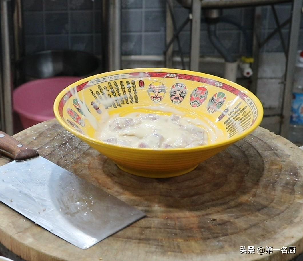 2,在切好的肉丁里面,加入食鹽,胡椒粉,料酒,生粉,雞蛋清,食用油拌勻。