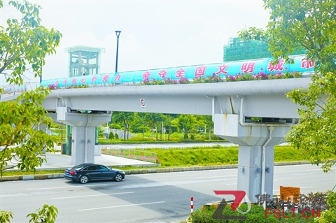 荷富大道的一座人行天橋上掛著文明標(biāo)語,經(jīng)過整治,環(huán)境變得更加整潔。