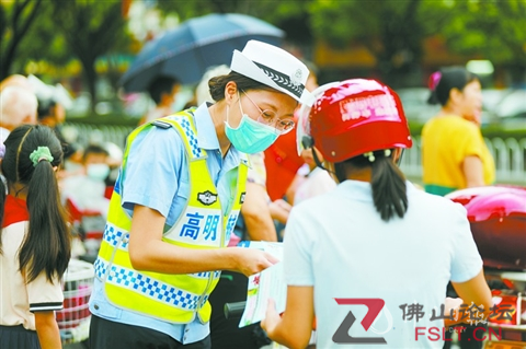 7月2日下午,高明交警在文華路開展交通安全教育宣傳。