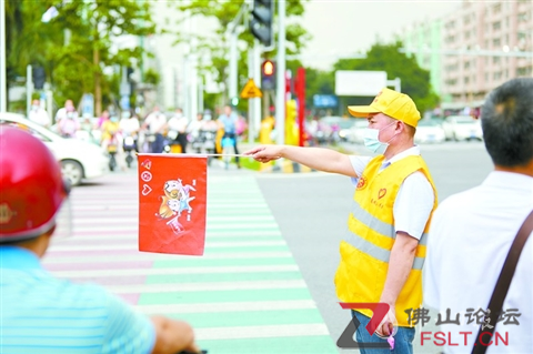 8月18日下午,下班高峰期間,志愿者在中山路口指引市民有序出行。