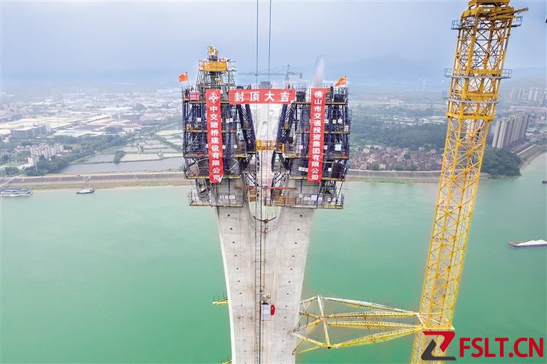 佛山富龍西江特大橋東岸主塔封頂,橋梁方案世界首創(chuàng)