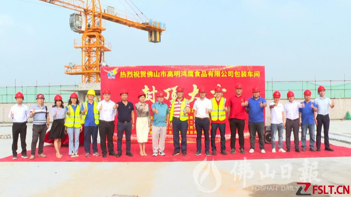 2022年佛山市重點項目之一的高明鴻鷹食品有限公司的增資擴產(chǎn)項目舉行封頂儀式。 部門供圖