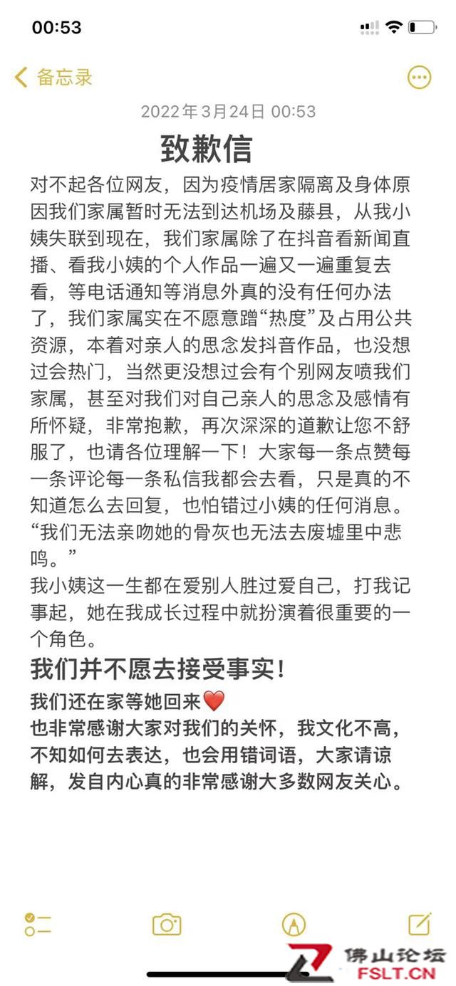 因不堪其擾,24日凌晨,小月在抖音上發(fā)布《致歉信》表示,“我們家屬實在不愿意蹭‘熱度’及占用公共資源,本著對親人的思念發(fā)抖音作品,也沒想過會(成)熱門,當然更沒想過會有個別網(wǎng)友噴我們家屬,甚至對我們對自己親人的思念及感情都有所懷疑,非常抱歉,再次深深的道歉讓您不舒服了……”
