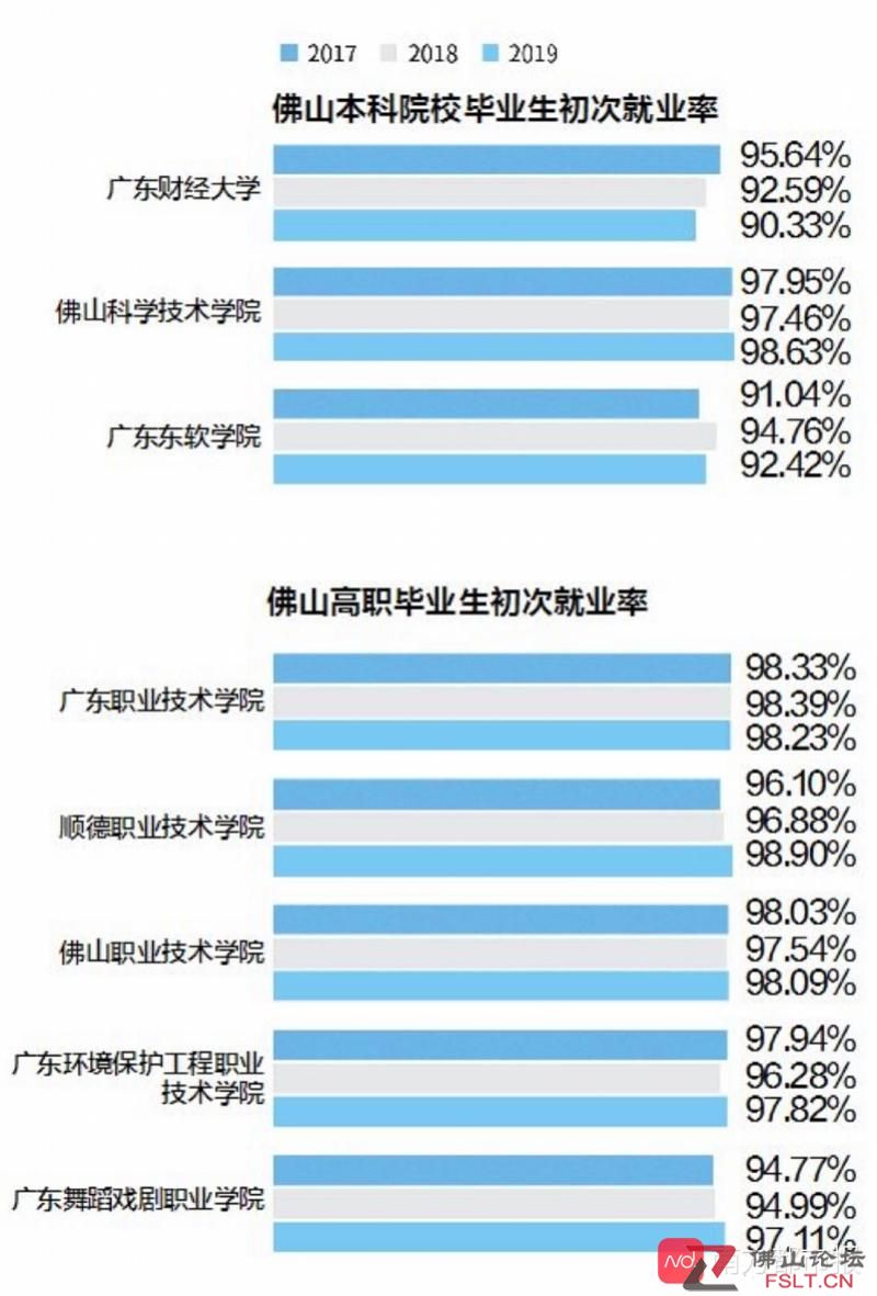 佛山高校畢業(yè)生去哪兒?平均薪酬有多少?8月25日,南都記者整理了2017-2019年廣東省教育廳和佛山本科、高職和專(zhuān)科公布的各類(lèi)指標(biāo)數(shù)據(jù),發(fā)現(xiàn)除了2018年有輕微下降,近三年佛山本地本科、高職院校的初次就業(yè)率、薪酬水平幾乎整體呈上升趨勢(shì)。其中,佛山科學(xué)技術(shù)學(xué)院畢業(yè)生留佛山率最高,除了佛山市,佛山畢業(yè)生最?lèi)?ài)廣州、深圳。