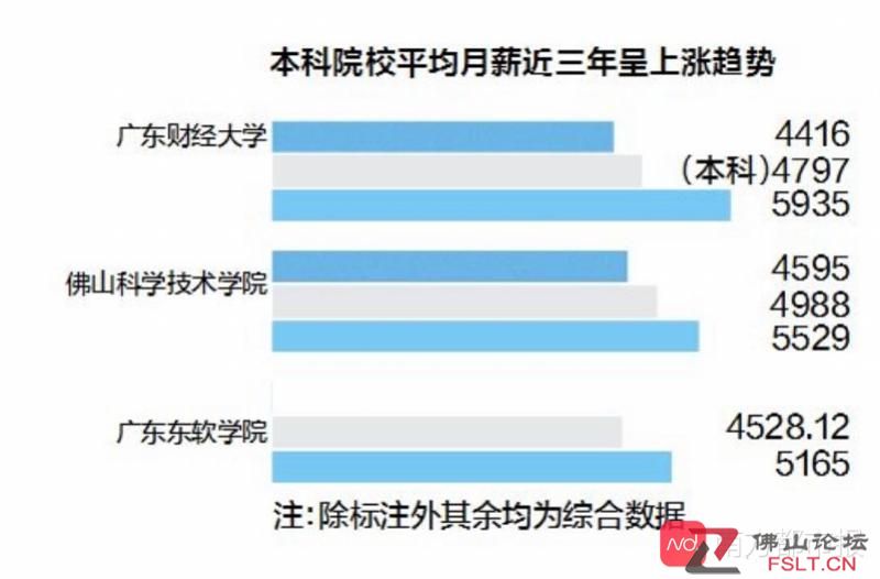 就本科畢業(yè)生來(lái)看,佛山幾所本科院校2019屆畢業(yè)生平均起薪超過(guò)5000元,其中包括佛山科學(xué)技術(shù)學(xué)院、廣東東軟學(xué)院和在佛山設(shè)分校區(qū)的廣東財(cái)經(jīng)大學(xué),這也是近3年來(lái)佛山本科畢業(yè)生平均薪資首次突破五千元大關(guān),位于領(lǐng)跑地位的是廣東財(cái)經(jīng)大學(xué),2019屆畢業(yè)生平均起薪達(dá)5935元。