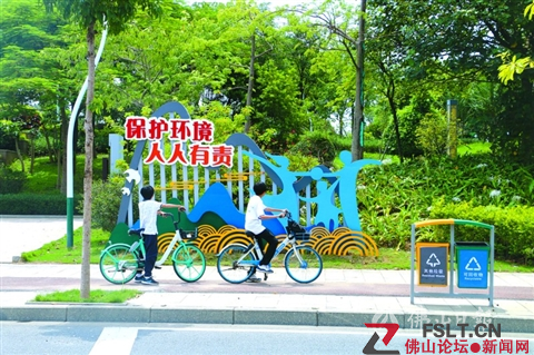 市民在文明景觀小品前駐足。/三水區(qū)文明辦供圖