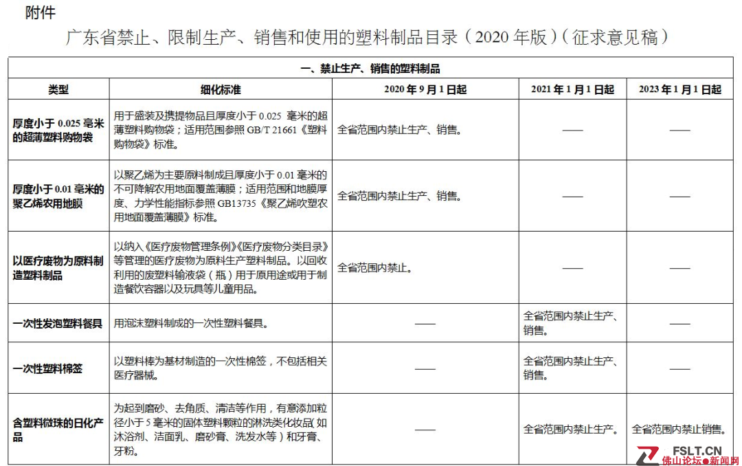 為便于各地執(zhí)行《省實(shí)施意見》,省發(fā)展改革委、省生態(tài)環(huán)境廳制定了《廣東省禁止、限制生產(chǎn)、銷售和使用的塑料制品目錄(2020年版)》,明確了相關(guān)禁限細(xì)化標(biāo)準(zhǔn)、區(qū)域范圍和時間節(jié)點(diǎn)。