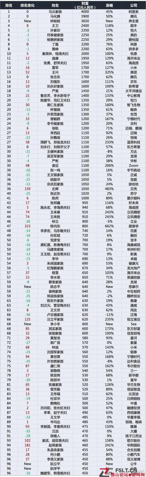 2020年胡潤百富榜:2398位中國企業(yè)家上榜,總財(cái)富超德國一年GDP
