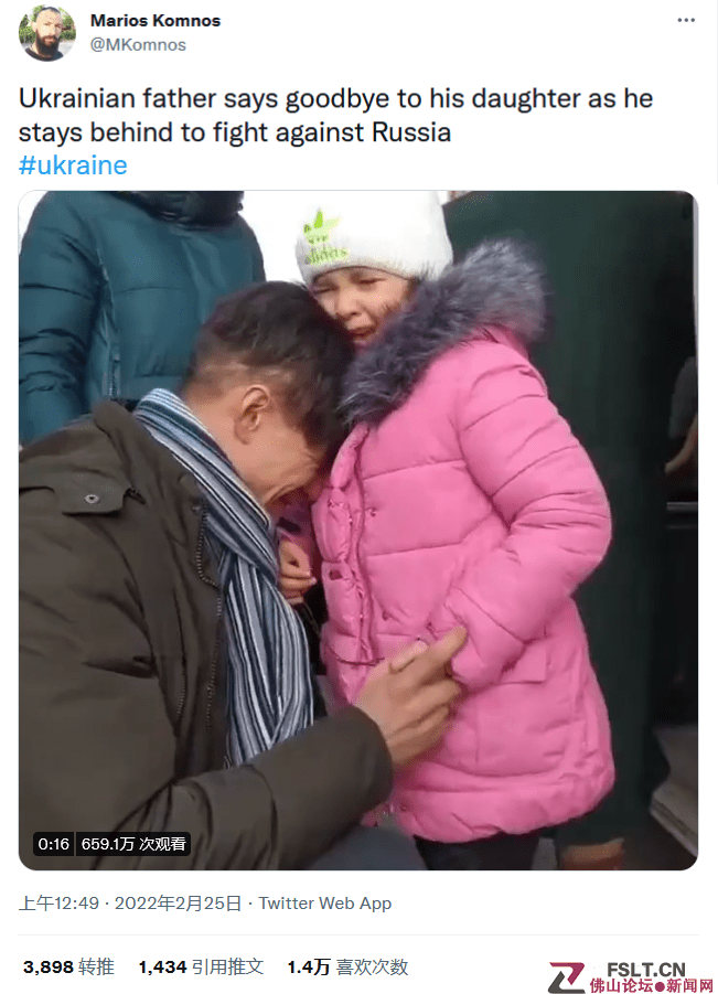 最近,一則“烏克蘭父親淚別女兒,隨后準備與俄軍作戰(zhàn)”的視頻在西方主流媒體和社交平臺瘋傳,動輒就有近千萬播放量、上萬點贊。視頻隨后也被搬運到了包括中國在內(nèi)的多個國家的媒體和平臺,在全世界范圍賺了一大票眼淚。