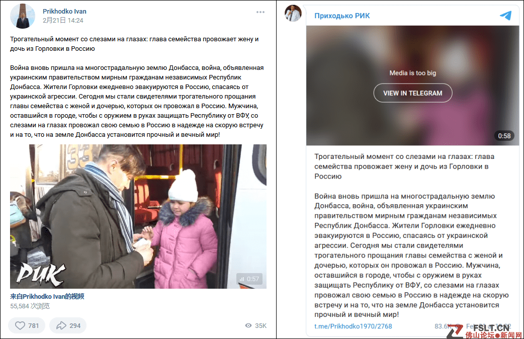 然而事實上,真相與西方媒體的報道完全是南轅北轍,視頻中的男子實則來自烏東地區(qū)的親俄人士,當?shù)貢r間21日他遵從政府的疏散安排將妻女送往俄羅斯安全區(qū)域,然后轉(zhuǎn)身準備投入與烏克蘭軍隊的戰(zhàn)斗。就在同一天,俄羅斯總統(tǒng)普京宣布承認“烏東地區(qū)”獨立。