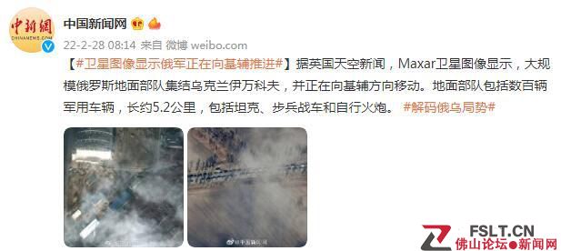 據(jù)英國天空新聞,Maxar衛(wèi)星圖像顯示,大規(guī)模俄羅斯地面部隊集結(jié)烏克蘭伊萬科夫,并正在向基輔方向移動。地面部隊包括數(shù)百輛軍用車輛,長約5.2公里,包括坦克、步兵戰(zhàn)車和自行火炮。