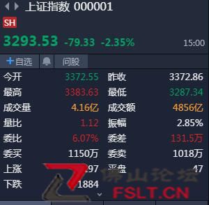 早間,A股三大指數(shù)開盤漲跌不一,開盤后曾一度短暫集體飄紅,不過,隨后就開始急速下滑,滬指早盤跌破3300點整點關(guān)口。午后,大盤一度迅速拉升,收復3300點,跌幅大幅縮小,就在股民松一口氣之時,大盤重拾跌勢,再次下挫,盤中再次跌破3300點。截至收盤,滬指跌2.35%,報3293.53點,深成指跌2.62%,報12244.50點,創(chuàng)指跌1.80%,報2582.99點。
