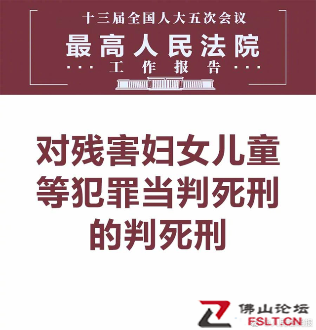 最高法工作報(bào)告:人民法院準(zhǔn)確貫徹死刑政策,對嚴(yán)重危害公共安全、嚴(yán)重影響群眾安全感的犯罪,對殘害婦女兒童、老年人等挑戰(zhàn)法律和倫理底線的犯罪,論罪當(dāng)判死刑的,依法判處并核準(zhǔn)死刑,堅(jiān)決維護(hù)法治權(quán)威。