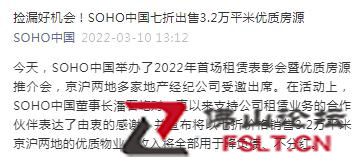 SOHO中國七折出售3.2萬平米核心物業(yè)房源,潘石屹稱收入全部用于降負(fù)債、不分紅