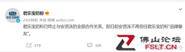 鞭牛士 3月14日消息,今日,君樂寶奶粉在官方微博發(fā)文稱,已終止與安賢洙的全部合作關(guān)系,即日起安賢洙不再擔(dān)任君樂寶奶粉“品牌摯友”。