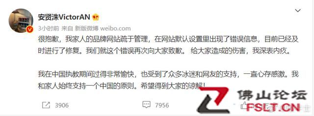 今日上午,安賢洙發(fā)文:很抱歉,我家人的品牌網(wǎng)站疏于管理,在網(wǎng)站默認(rèn)設(shè)置里出現(xiàn)了錯誤信息,目前已經(jīng)及時進(jìn)行了修復(fù)。