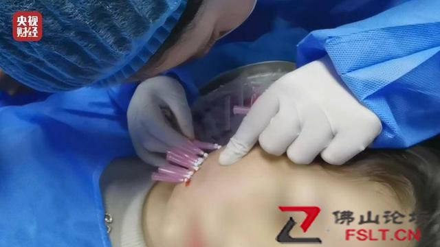 記者看到,老師先將幾十支鈍針挨個(gè)刺入學(xué)員一側(cè)臉部的皮膚,隱隱看到有鮮血不斷滲出。埋好蛋白線,老師又依次將鈍針拔出,接下來(lái)給另一側(cè)臉部進(jìn)行埋線。
