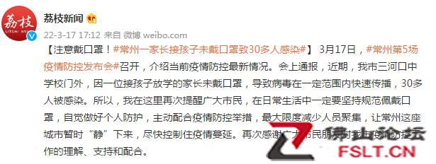 常州一家長接孩子未戴口罩致30多人感染