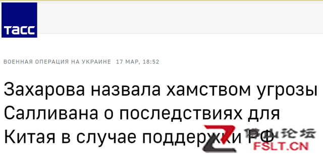 塔斯社:扎哈羅娃稱沙利文威脅中國若支持俄羅斯則面臨后果是蠻橫無理的行為
