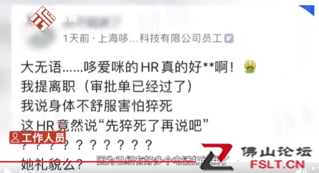 傳上海一公司HR回復(fù)離職員工:“猝死了再說吧!” 工作人員回應(yīng)