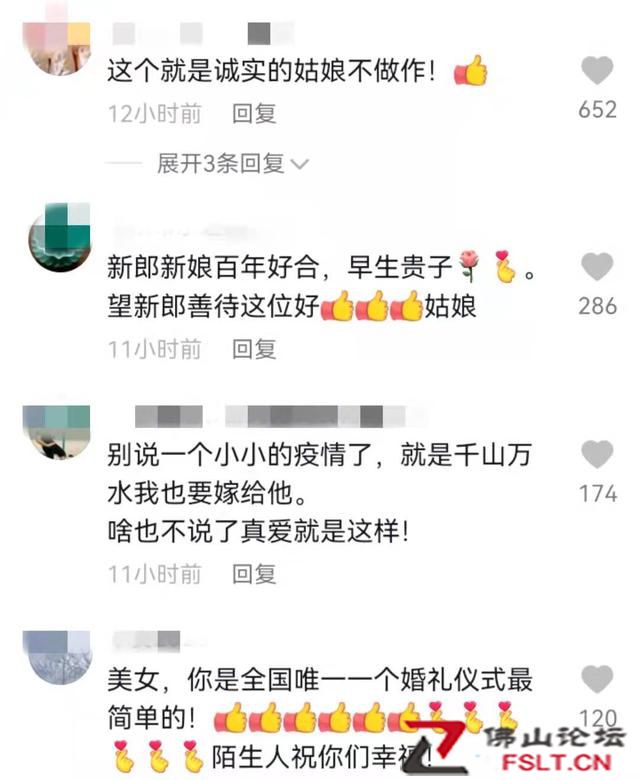 該新聞視頻上傳至網(wǎng)上后,網(wǎng)友們被新娘的樂(lè)觀所感動(dòng),紛紛為這對(duì)新人送上的美好的祝福。