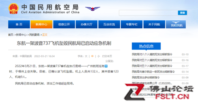 已確認一架搭載132人的客機在廣西藤縣發(fā)生事故 傷亡情況未明