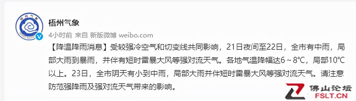 值得注意的是,在事故發(fā)生4小時前,梧州氣象曾發(fā)布降溫降雨消息稱,受較強冷空氣和切變線共同影響,21日夜間至22日,全市有中雨,局部大雨到暴雨,并伴有短時雷暴大風等強對流天氣。