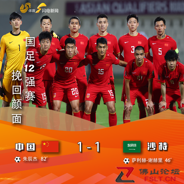 朱辰杰點射命中,12強賽國足1-1戰(zhàn)平沙特