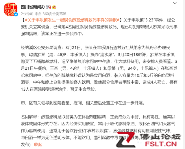 瀘州官方通報“誤食醇基燃料致死事件”