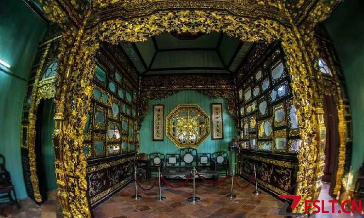 碧江金樓古建筑群中最矚目的當(dāng)屬金樓。金樓,原名賦鶴樓,樓內(nèi)裝飾著金碧輝煌的木雕,多取金箔鑲貼,幾乎包羅了木雕藝術(shù)中的所有手法,故得名金樓。據(jù)說(shuō)是因清末名臣戴鴻慈之女嫁入職方第,作為嫁妝與贈(zèng),與民間“金屋藏嬌”之說(shuō)法不謀而合。院宅內(nèi)還保存著當(dāng)年劉墉、宋湘、王文治、張?jiān)泪?、戴鴻慈等清代名家、進(jìn)士題寫的木、石匾額及多件書畫翰墨真跡。