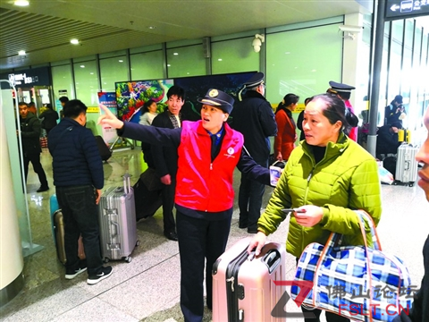 佛山西站城市管理局志愿服務(wù)隊為乘客指引道路。/部門供圖