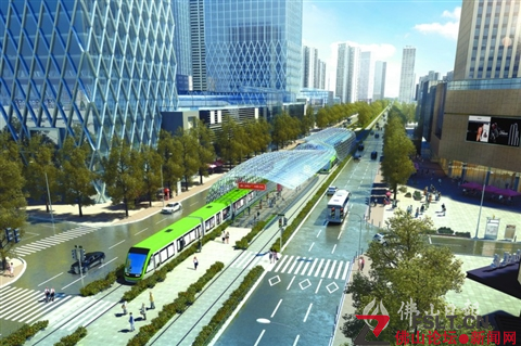 圖為南海區(qū)有軌電車?yán)锼痉抖涡Ч麍D。報告提出“一軌二橋三路四縱五橫”戰(zhàn)略,一軌即南海區(qū)有軌電車?yán)锼痉抖?,投資19.09億元,年內(nèi)開工。/通訊員供圖