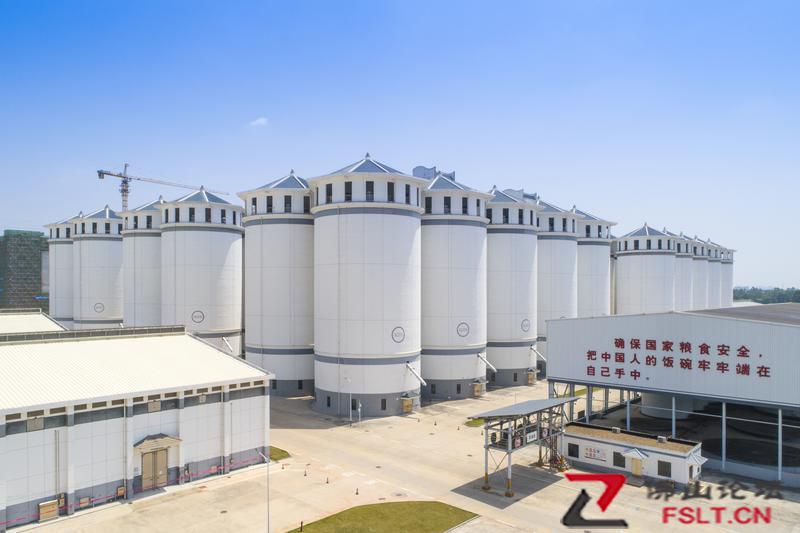 佛山市糧食儲(chǔ)備庫,只見28座約40米高的淺圓倉,3排新型平房倉整齊劃一、氣勢恢弘。