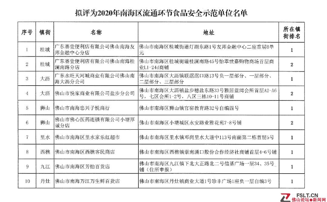 根據(jù)《關(guān)于印發(fā)2020年南海區(qū)流通環(huán)節(jié)食品安全示范單位創(chuàng)建活動(dòng)工作方案的通知》,經(jīng)企業(yè)申請、分局初評、群眾投票、區(qū)局抽查復(fù)評等程序,廣東賽壹便利店有限公司佛山南海友邦金融中心分店等10個(gè)單位,擬評為2020年南海區(qū)流通環(huán)節(jié)食品安全示范單位,現(xiàn)予以公示。