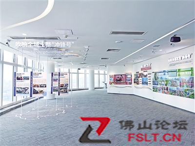 “館內是館,館外也是館”是展廳最大特色。站在南海城市中軸中心位置的最高處,透過大廈玻璃,可以360度俯瞰城市景觀,了解空間格局、展望美好未來,每一個角度望去,都可以看到大瀝城市更新的當下與未來。