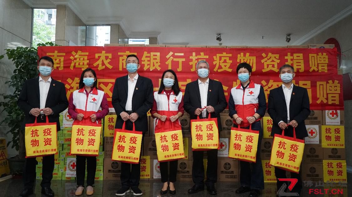 南海農(nóng)商銀行向南海區(qū)紅十字會(huì)捐贈(zèng)抗疫物資。