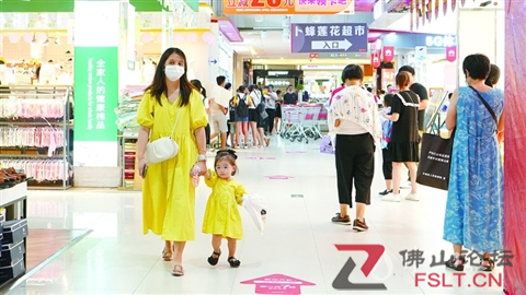 市民在三水廣場逛街購物。