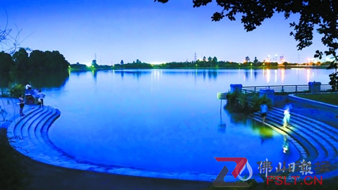 位于三水新城的荷香湖公園,黃花風(fēng)鈴木、黃葛樹、紫荊等花木點(diǎn)綴著不同光照色彩下的三水。白天,這里碧水清流、綠樹成蔭;晚上,河涌兩岸五光十色的燈光與水中倒影交融,如同換上五彩霓裳?!?/p>