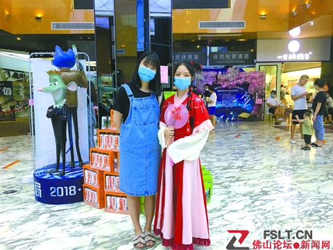 在新動力廣場,獨自一人穿著漢服的小御(化名)吸引了記者的注意?!拔艺陔娪霸鹤黾媛?,今天電影院搞七夕活動,所以我穿上了漢服?!毙∮嬖V記者說,她今年19歲了,在三水生活,而她的男朋友在順德工作,今天需要上班,因此無法見面。兩人通常一個月只見2~3次面。