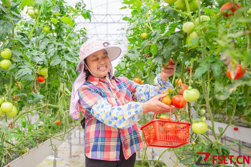 康喜萊現(xiàn)代農(nóng)業(yè)產(chǎn)業(yè)園內(nèi),村民正在采摘西紅柿。/佛山日報記者王澍攝
