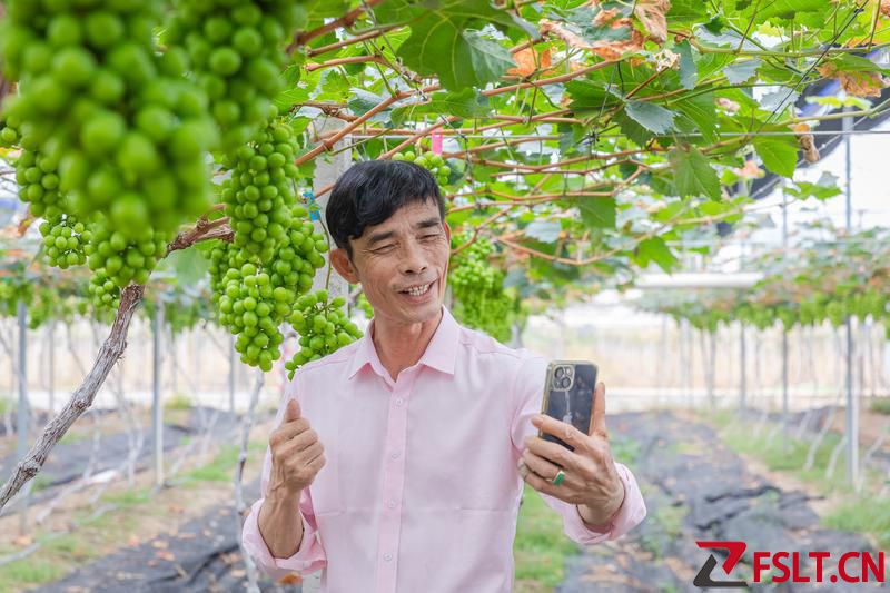 何文勝正在直播介紹園內(nèi)的葡萄,同時為粉絲們普及科技農(nóng)業(yè)知識。/佛山日報記者王澍攝