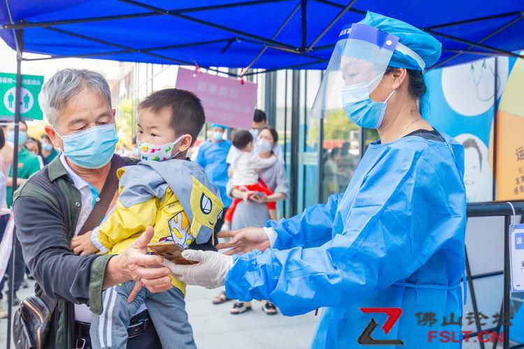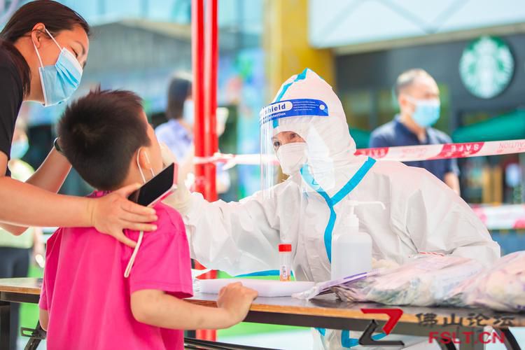2022年4月11日,三水區(qū)開展區(qū)域核酸檢測,三水萬達(dá)廣場核酸檢測采樣點(diǎn)內(nèi)開通了綠色通道,現(xiàn)場醫(yī)護(hù)人員正在為小朋友做核酸檢測。/佛山日報(bào)記者王澍攝
