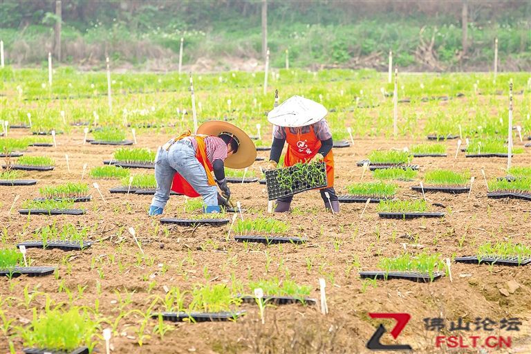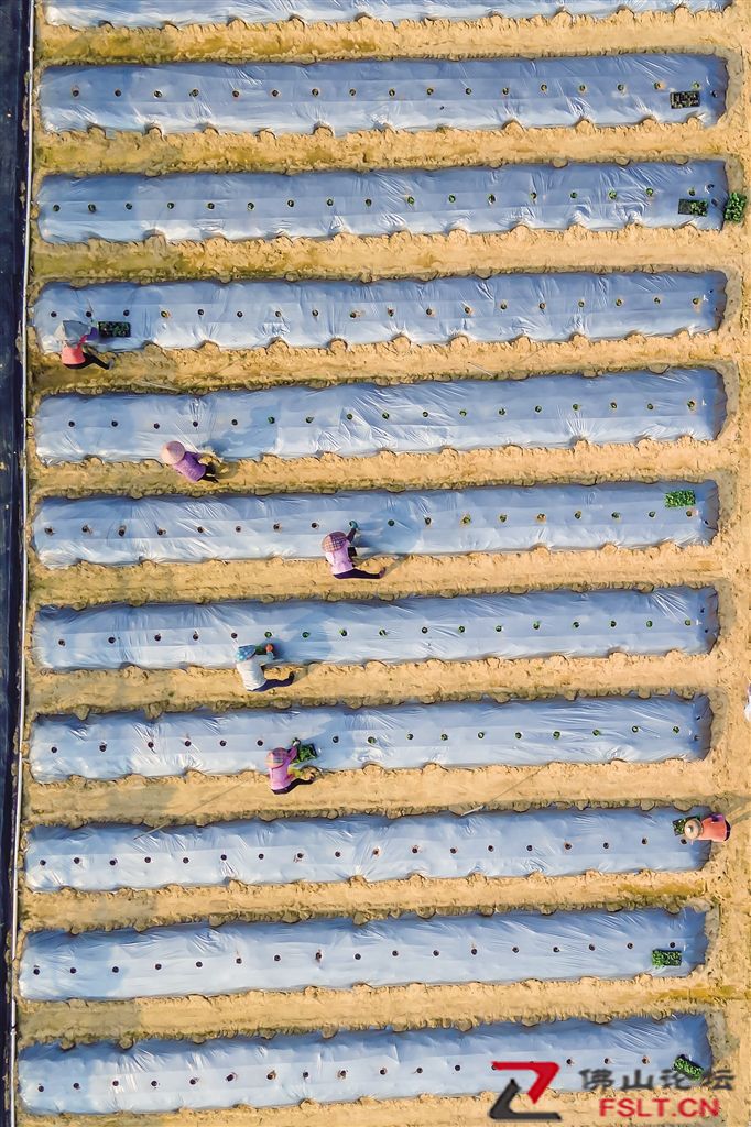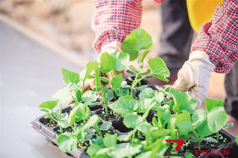 過去農(nóng)耕要“看天”,現(xiàn)在則是有了更多高科技加持。圖為三水大塘農(nóng)業(yè)園內(nèi),工作人員正在緊鑼密鼓地栽種冬瓜苗。