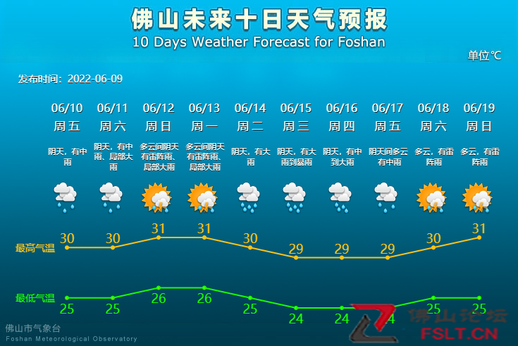 據(jù)佛山市氣象臺(tái)9日預(yù)報(bào),未來(lái)10天“龍舟水”不斷,預(yù)計(jì)我市將有兩次顯著降雨過(guò)程,分別出現(xiàn)在6月10日至11日、14日至17日。