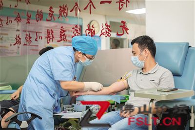 許多熱心市民來到佛山市中心血站三水血站無償獻血,現(xiàn)場醫(yī)生正在為市民采血。/佛山日報記者王澍攝