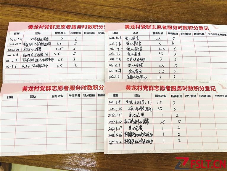 黃龍社工站項目主管陳浩怡介紹,為激勵更多居民加入志愿服務隊伍,2021年5月15日,黃龍村啟動黨群先鋒隊志愿者公益服務時數(shù)積分獎勵制度。該制度建有個人獨立積分臺賬,志愿者參加完志愿服務活動后,相應的服務時長會被記錄下來。為黃龍村每服務30分鐘可獲1分,累計到一定的積分,在兌換時間里可以憑“積分存折”兌換日常生活用品。
